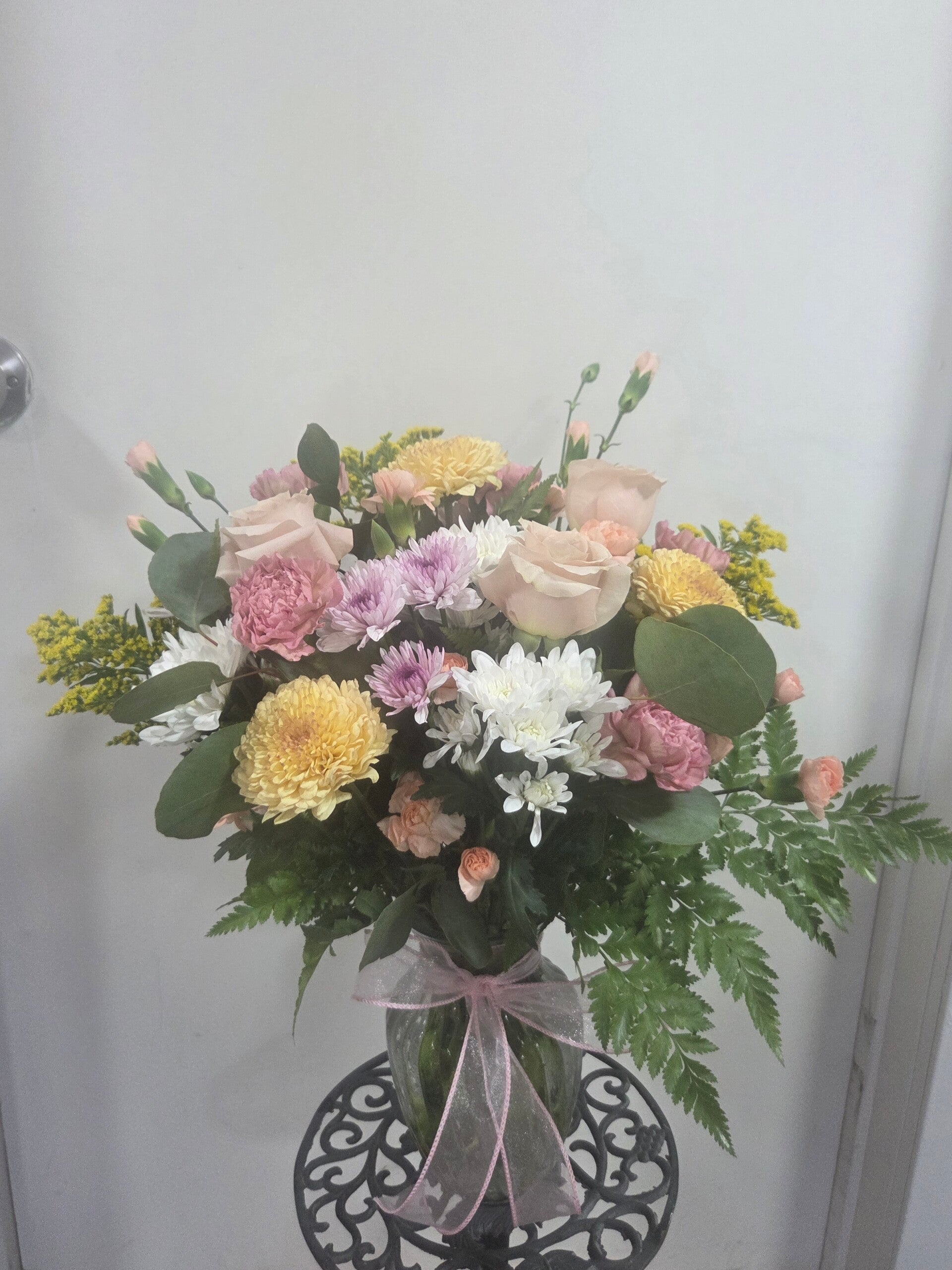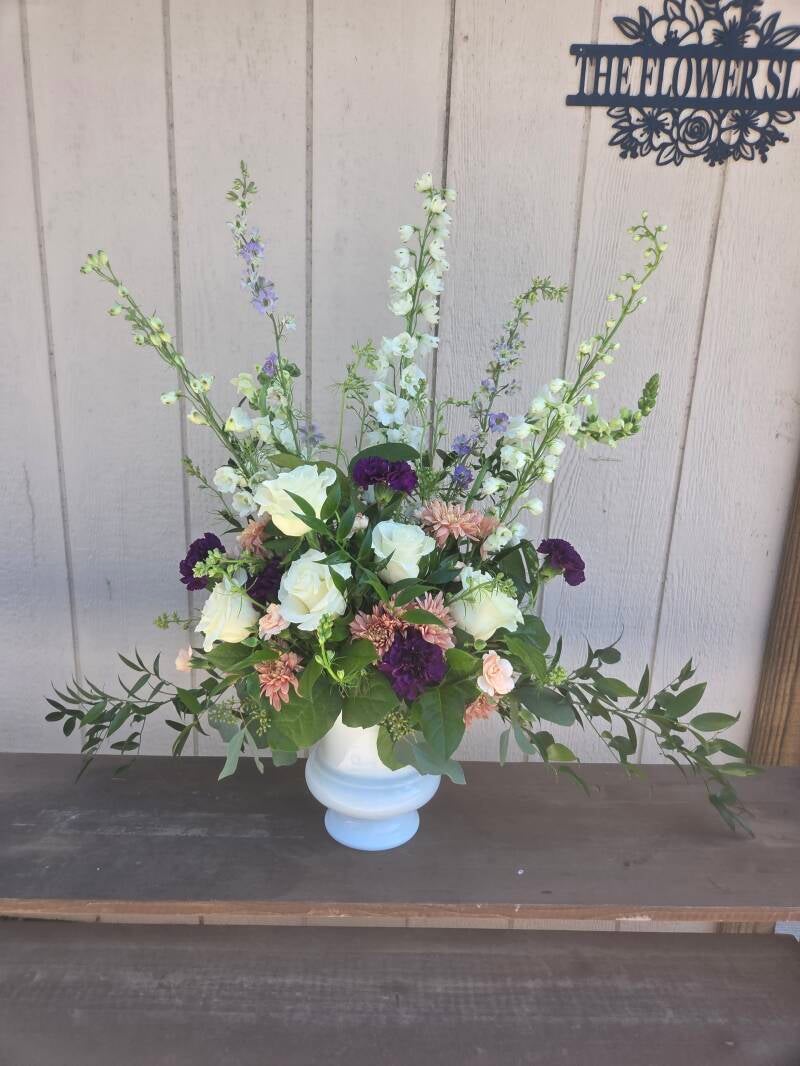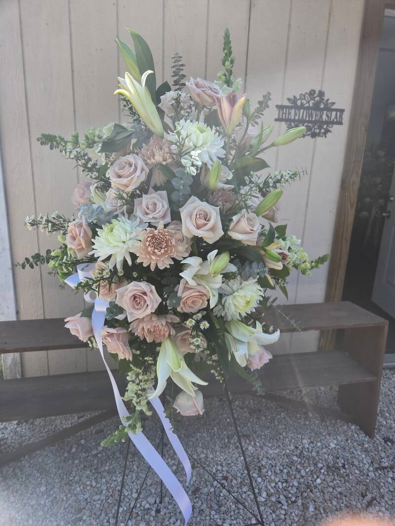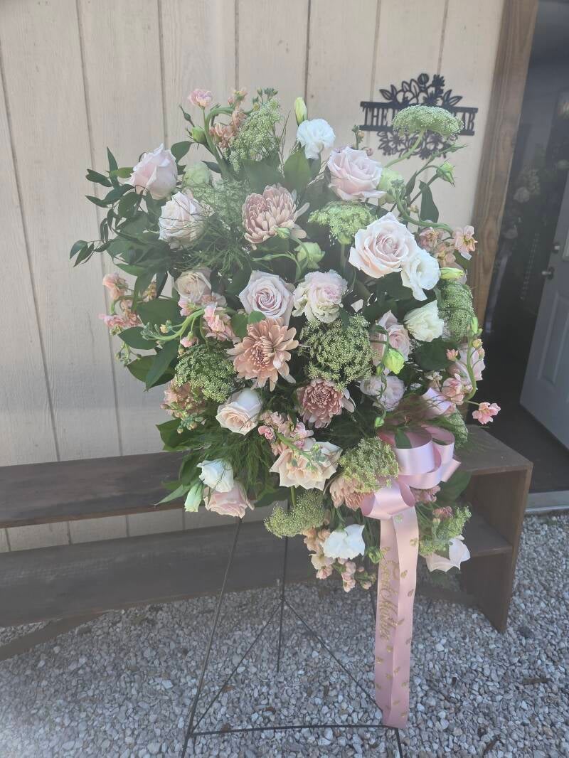 I recently had the privilege of delivering a couple of floral arrangements to Sacred Heart Catholic Church. This included a beautifully crafted vase arrangement, as well as a last-minute request for a standing spray. You can find pictures of these arrangements below.