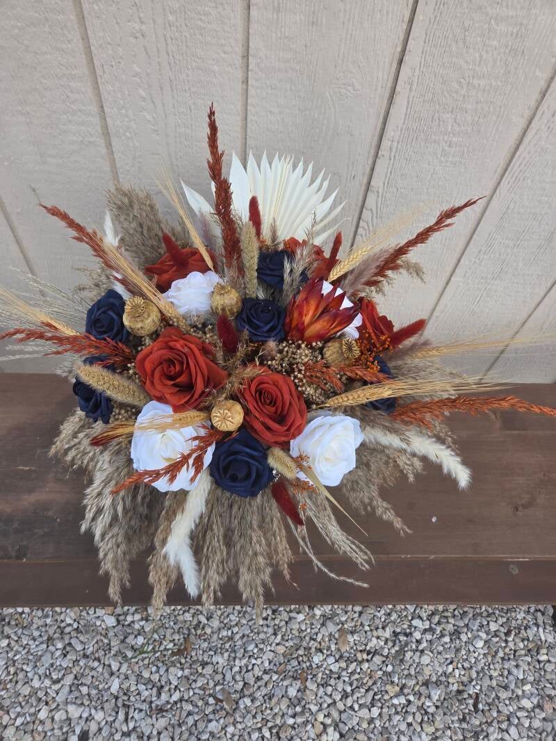 Another order I completed in December was not urgent. The client shared a picture of a bridal bouquet she adored, which you can see below for inspiration. She provided a base for the arrangement and requested that it be lower than what was initially designed. While the base was larger than the bride's bouquet, I incorporated the same floral elements she loved. Ultimately, she was delighted with the result and had ample time to pick it up. I've created the arrangement from several angles for your viewing.